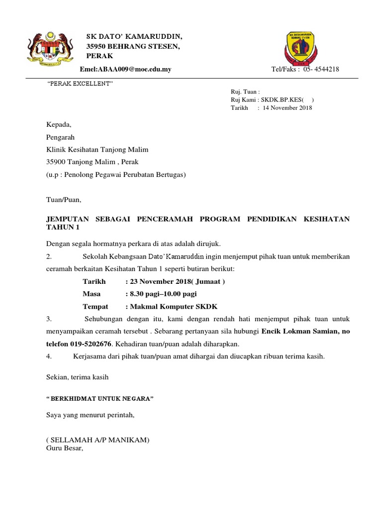 Surat Jemputan Klinik Kesihatan T1 Pdf